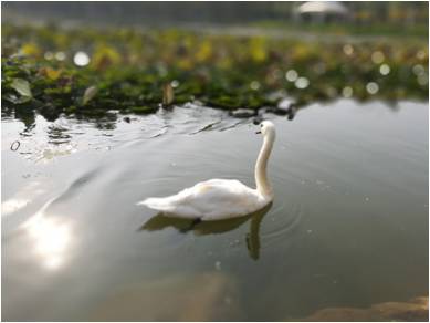 骆宾王曾作《咏鹅》:白毛浮绿水,红掌拨清波。吉大的爱并不仅限于人类,还有优雅而可爱的天鹅。在吉大南区的清湖,有几只美丽的天鹅。本照片中就是一只凝望远方,曲项向天歌的沉思鹅。波动的水纹下,更显鹅的沉静。我想,此刻的它,所想的应是:啊,我爱吉大,每天我的人类奴仆都会为我投食;人类啊,真是太美妙了,我爱人类。
