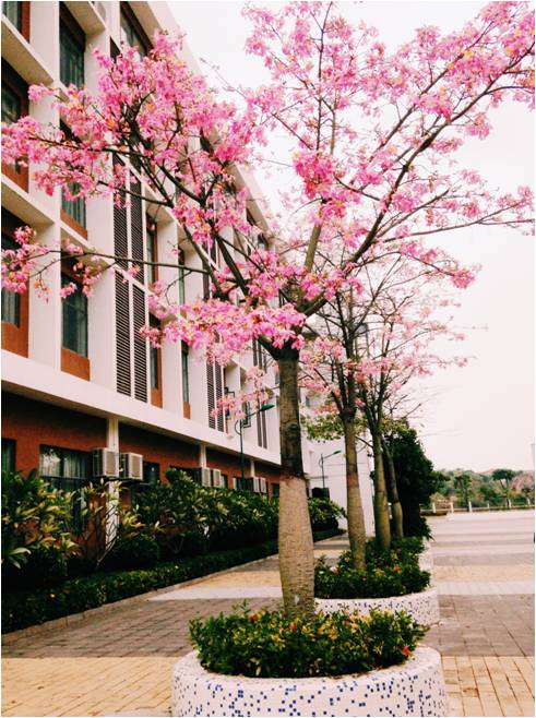 拖着硕大无比的箱子踏入大学校门的那一刻,便被校门口那一片粉红所吸引,那么娇嫩,那么纯粹,迎接着每一个怀着或平静或疲惫的心情走进校园的我们。已经拖着箱子走过这片灿烂的我,还是停下了脚步,将箱子丢在一边,掏出手机记下了这繁花一瞬。