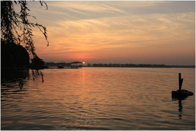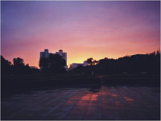 初到吉大,一天的忙碌后,从小西门出来,穿过三佳湖公园,正值夕阳西下时分,火红的夕阳撒在平静的湖面上,新生接踵而至,赞叹着美丽的景色,不禁拿过爸爸手中的相机,绕到湖的侧面,在一个少有人至的地点拍下了这张照片。