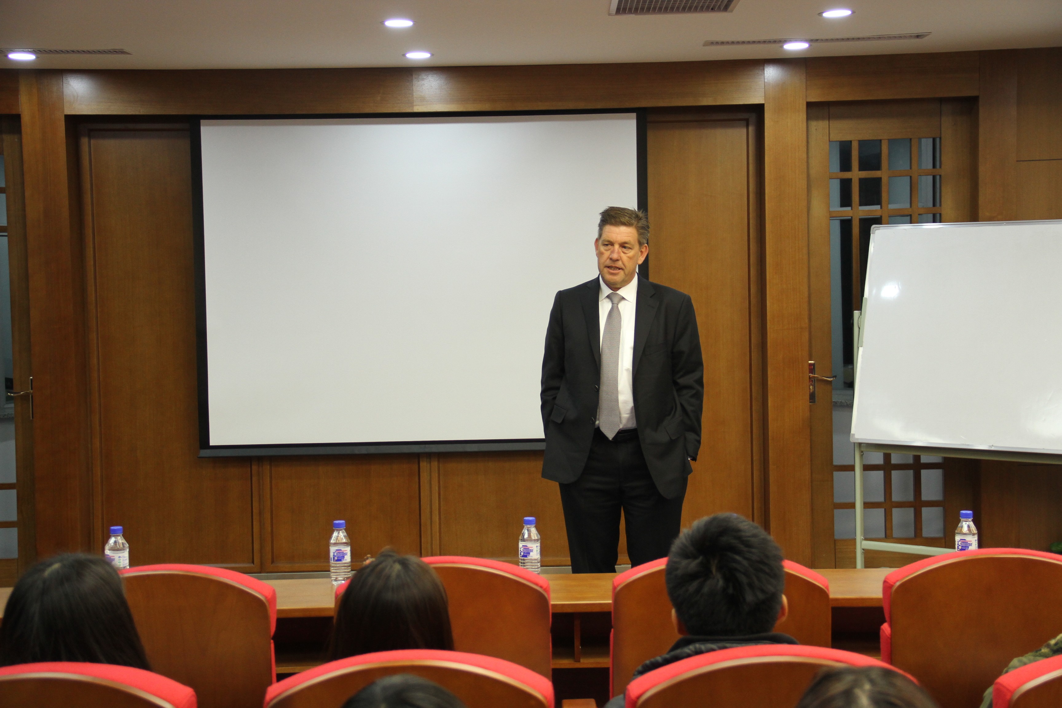 在讲座中,Prof. PALMER对全球资本市场的演进过程、方式、其中涉及的风险进行了讲解。主要从信用风险、期限错配 、流动性风险 等角度阐述了全球资本的流动以及过程中所蕴含的风险。结合美国次贷危机对信用风险以及期限错配风险进行了说明。讲座结束后白菜官网教师就国际资本市场上的汇率问题和期限错配问题与Prof. PALMER进行了深入交流。本次学术讲座使得白菜官网师生加深了对国际资本流动的了解,尤其是美国资本市场的运作模式有了解。现场讨论气氛热烈,讲座效果良好,此次聘任仪式和学术讲座圆满结束。 美国资本市场的运作模式有了解。现场讨论气氛热烈,讲座效果良好,此次聘任仪式和学术讲座圆满结束。