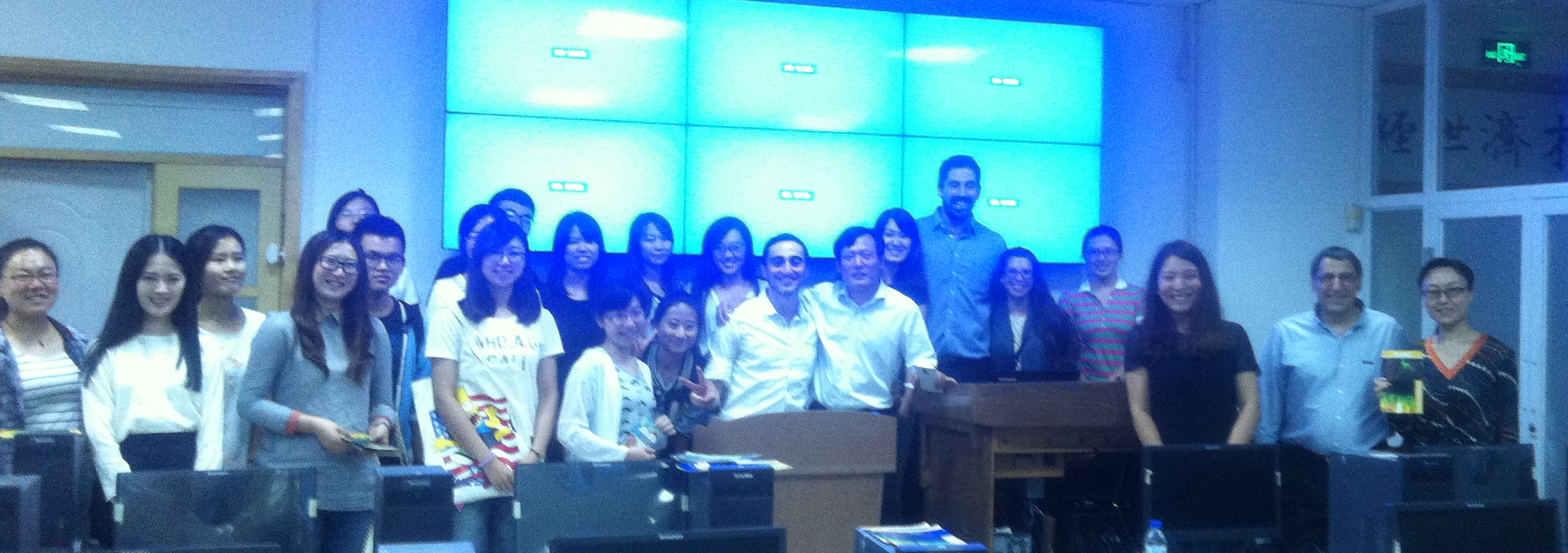 作为以色列青年代表,来自以色列赫兹利亚跨学科研究中心的Shimon Keselman和Roshel Moshayev和大家分享了自己的成长经历。一场关于以色列国情的“快问快答”迅速调动起了大家的积极性。通过他们热情洋溢的讲述,同学们对以色列的移民政策、兵役制度、研发计划、政府政策和民族风格等有了真实而直观的认识。演讲结束后,同学们针对感兴趣的以色列集体农场基布兹(kibbutz)“如何保持犹太民族的特性”等问题和两位以色列青年展开了交流和探讨。