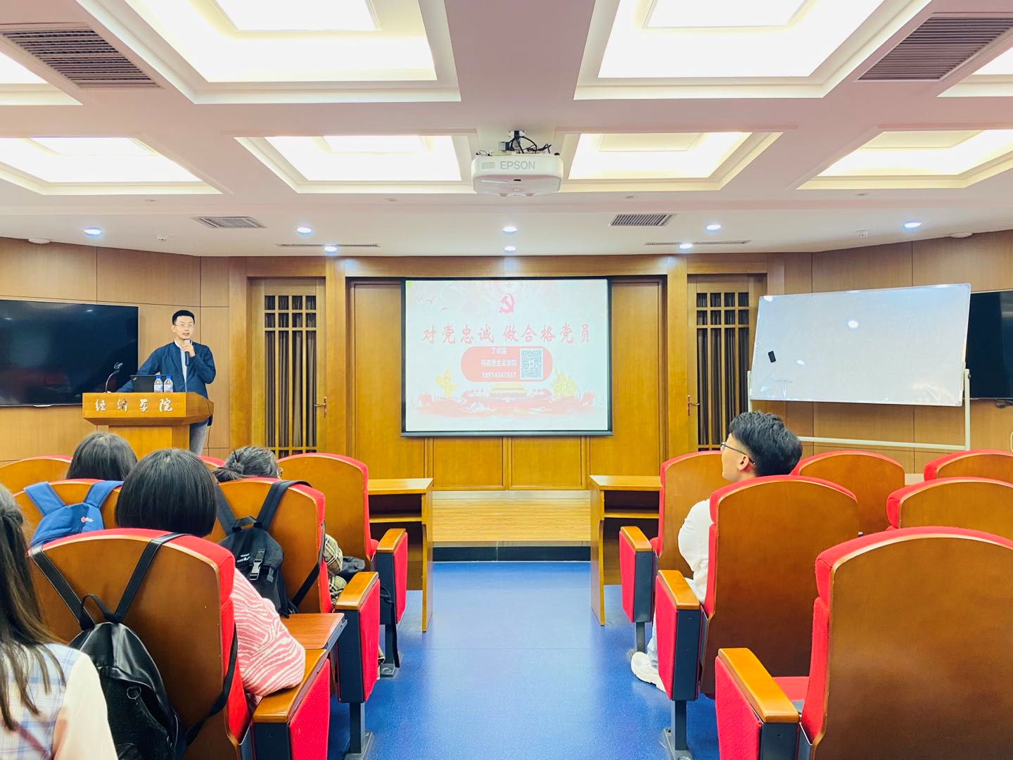 5月10日下午,002全讯白菜大全博士生讲师团走进002cc白菜资讯。马克思主义学院博士研究生丁卓越为002cc白菜资讯研究生党员及2021年发展对象作了题为《对党忠诚 做合格党员》的讲座。讲座由学院研究生辅导员冯舒老师主持。